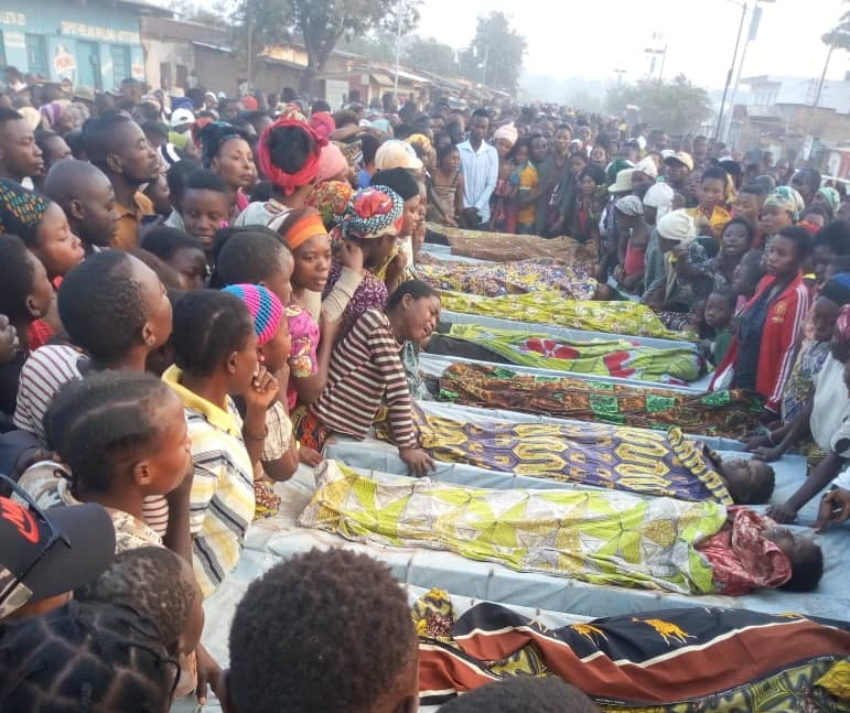 Tous les corps des victimes sont exposés sur la route nationale numéro 5 au niveau de Sange.